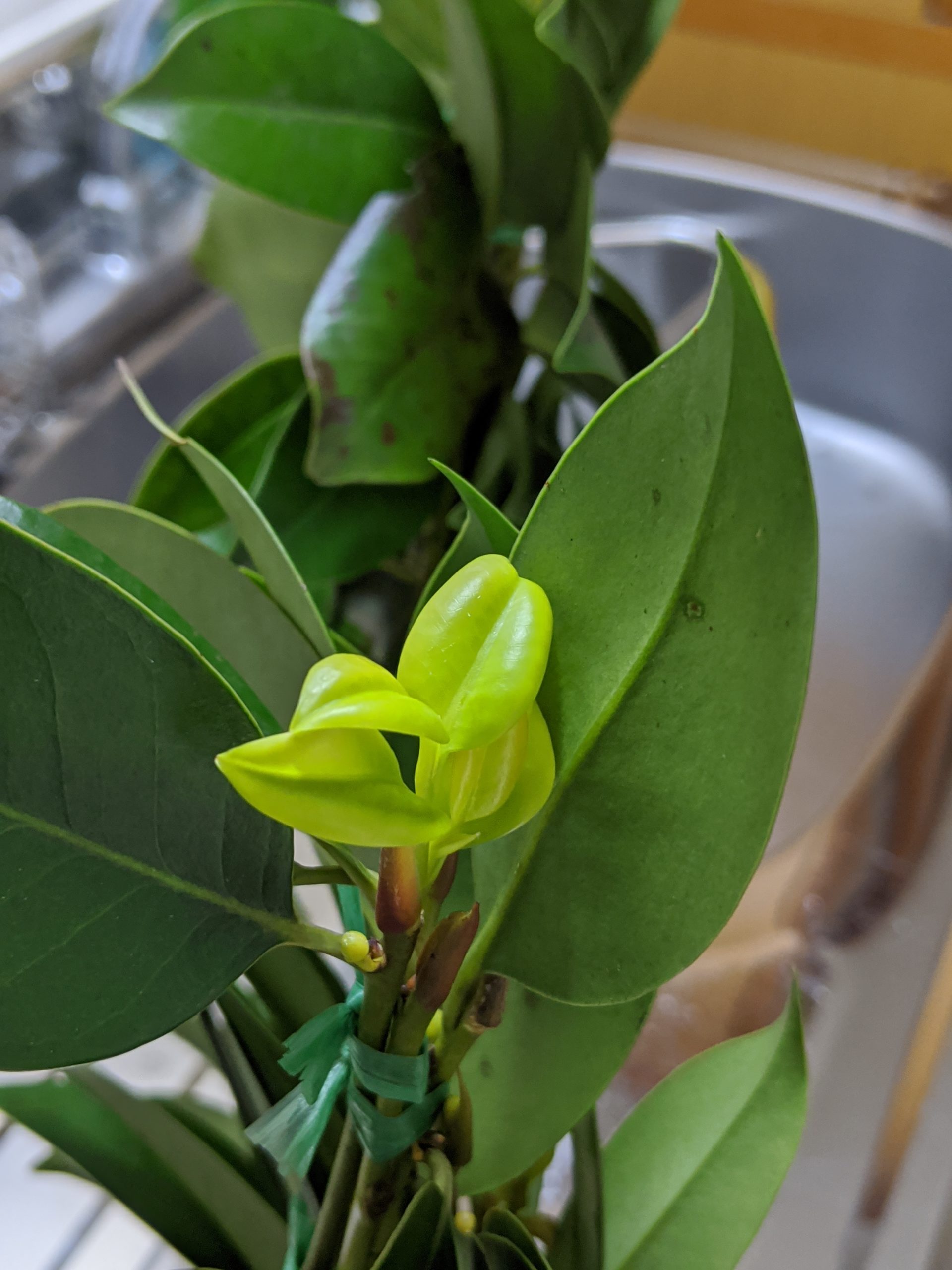 事務所の神棚の榊から新芽が生えてきました
