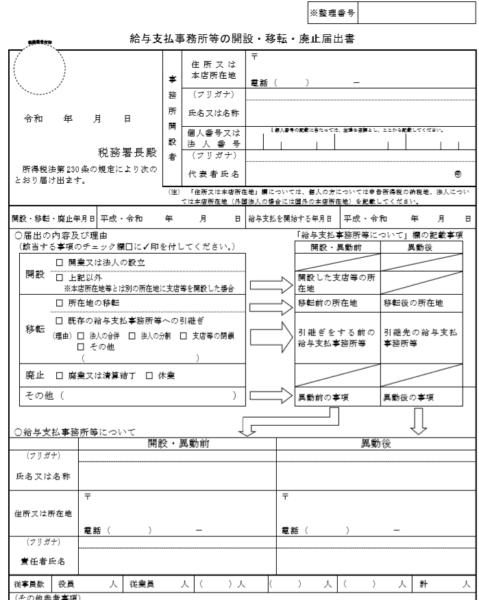 給与支払事務所等の開設届出書